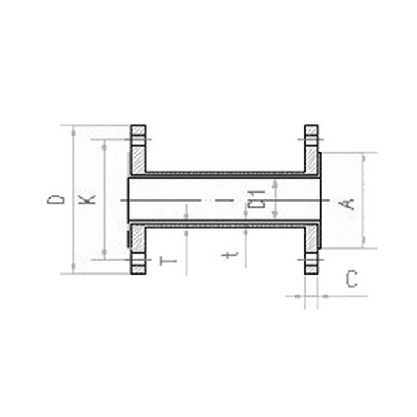 | 公稱直徑 | 鋼管規(guī)格T | 密封面A | 孔徑D1 | Po/Pe厚T | 法蘭外徑D | 法蘭中心距K | 法蘭厚度C |